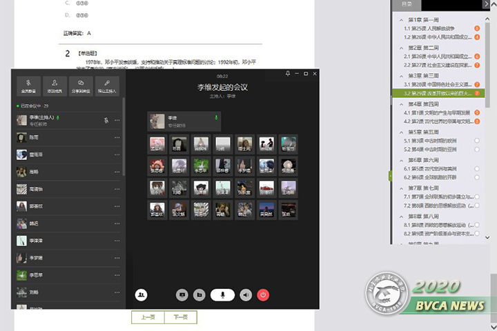 2020年春季開學以來,為了落實學院“停課不停教、停課不停學”的工作部署,在北苑校區(國際教育學院)領導的大力支持下,按照文科教學部要求線上教學必須要做到易學習、有重點、保質量,歷史教學依托“一平三端”平臺,將現代化科技手段融入到歷史這一傳統學科中,通過多渠道、多手段,保障了線上歷史教學的實時順利進行。