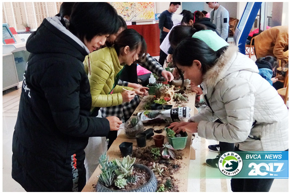 本次比賽是在去年“園藝植物組合盆栽大賽”基礎上舉辦的。技能比賽結合園藝系鄭志勇老師主持的“園藝療法促進高等職業教育學生身心健康的研究”課題(項目編號:2016-135-Y-001全國農業職業教育“十三五”研究課題)和圖書館周建成老師的“圖書館庭院文化建設研究”(項目編號:XY-SK-16-18院級課題),契合了“圖書館嵌入式學科服務的活動主題”,充分發揮了兩部門的優勢,并達到完美融合。