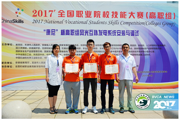 5月26至27日,2017全國高職院校職業(yè)技能競賽“風(fēng)光互補(bǔ)發(fā)電系統(tǒng)安裝與調(diào)試”項目在安徽機(jī)電職業(yè)技術(shù)學(xué)院舉行,機(jī)電工程學(xué)院代表隊有幸作為北京市三支代表隊中的一支參賽,喜獲三等獎的好成績。