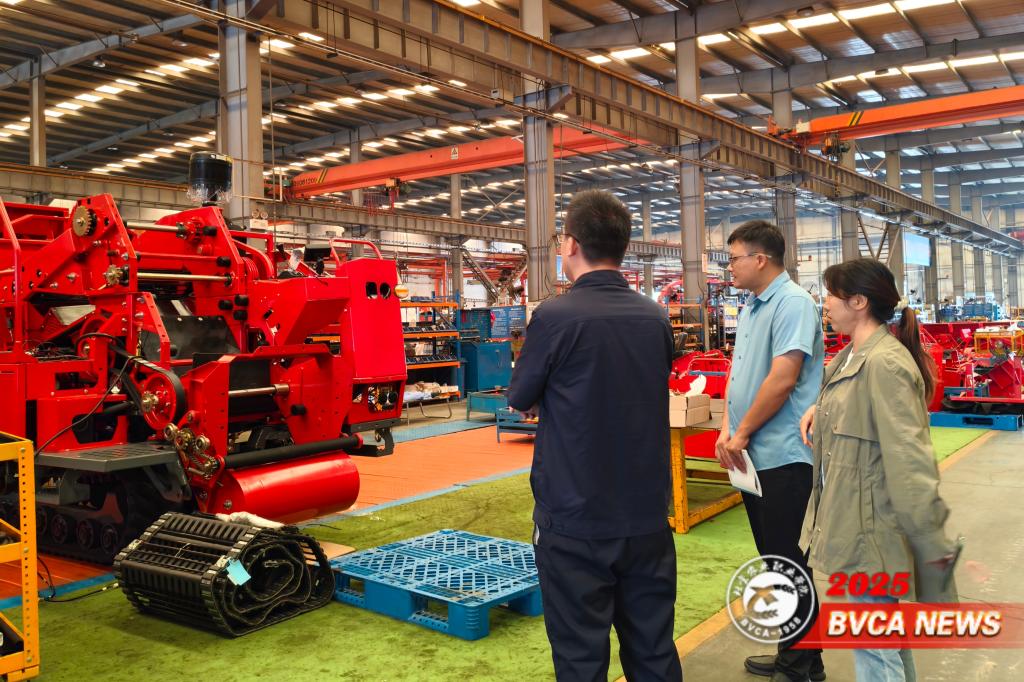 在中機美諾部門負責人的陪同下,學院教師團隊深入生產一線,詳細了解了青飼料收獲機、馬鈴薯收獲機及噴桿噴霧機的裝配流程、工作原理及應用場景。通過近距離觀摩自動化生產線與產品演示,教師們對現代農業裝備的技術前沿與產業需求有了更直觀地認識。
