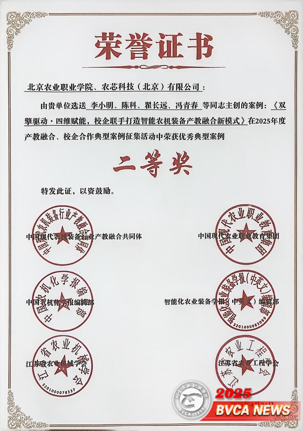 近日,中國現代農機裝備行業產教融合共同體公布了2025年產教融合典型案例評選結果,智慧農業工程學院報送的《聚焦產業升級需要,突出“復合”“實踐”,培育智慧農業高技能人才》和《雙擎驅動·四維賦能,校企聯手打造智能農機裝備產教融合新模式》兩項案例,在全國參評項目中脫穎而出,榮獲二等獎。