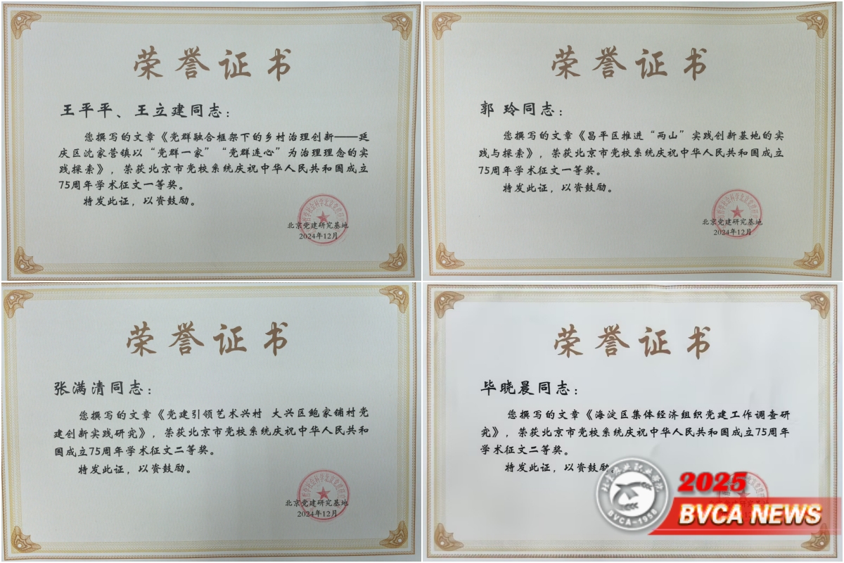 近日多項(xiàng)科研成果獲市級(jí)獎(jiǎng)項(xiàng),在理論研究方面,郭玲、王平平、王立建、張滿清、王麗娟、畢曉晨撰寫的4篇論文,在北京市黨校系統(tǒng)慶祝中華人民共和國(guó)成立75周年學(xué)術(shù)征文評(píng)選中斬獲兩個(gè)一等獎(jiǎng)和兩個(gè)二等獎(jiǎng)。文章立足黨建工作與北京農(nóng)村工作實(shí)際,深入剖析基層黨組織功能建設(shè),提出針對(duì)性的對(duì)策建議,實(shí)現(xiàn)了理論研究成果的新突破。