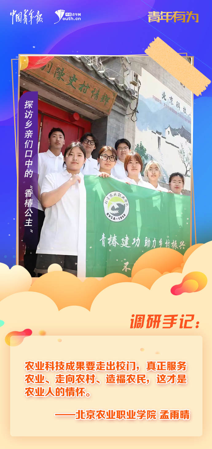 00后學生孟雨晴,是北京農業職業學院綠色食品生產與檢驗專業的一名學生。她讓原本深藏于山溝的香椿,經過再加工,成為市場上暢銷的“香餑餑”,她也由此被鄉親們稱呼為“香椿公主”。