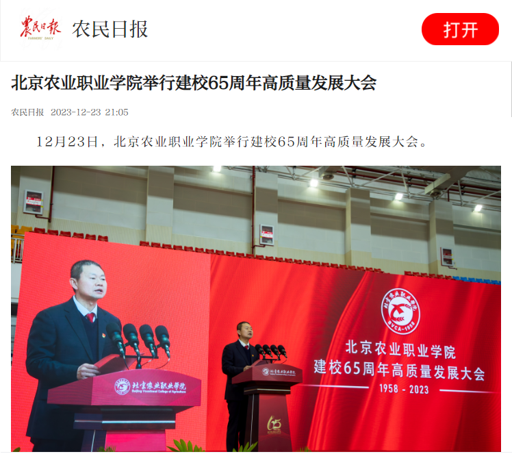 12月23日,北京農(nóng)業(yè)職業(yè)學(xué)院舉行建校65周年高質(zhì)量發(fā)展大會。