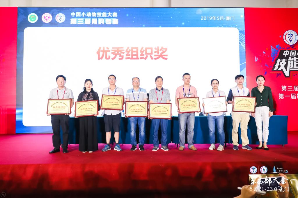 5月20至23日,2019年第三屆中國小動物臨床技能大賽骨科專賽決賽在廈門國際會展中心舉行,大賽由全國農業職業教育指導委員會指導,中國現代農業職業教育集團和東西部小動物臨床獸醫師大會主辦。在主任曹授俊教授和副主任周珍輝教授的帶領下,由指導教師張永東領隊,楊生濤、馮曉爽、郝玉春、彭睿雅四名同學組成的北京農業職業學院代表隊參加比賽,開幕式我校馮曉爽同學代表全國參賽選手發言。經過激烈的比賽,郝玉春同學表現優異斬獲大賽特等獎(同時獲得主辦方提供的暑假新加坡深造機會),楊生濤、馮曉爽、彭睿雅獲得三等獎。張永東、胡平老師獲得大賽優秀指導教師,張永東老師同時獲得大賽先進工作個人獎,北京農業職業學院獲得優秀組織獎和中國小動物技能大賽骨科教學示范基地的授牌。