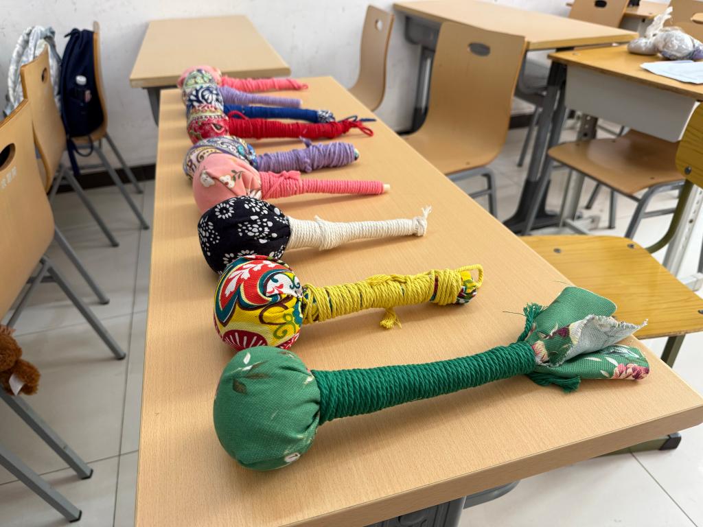實踐環節中,同學們在老師指導下親手制作端午特色艾草錘。活動現場準備了精選艾草、彩布綢緞等材料,大家通過填充、捆扎、裝飾等工序,將一束束清香艾草變成造型別致的養生錘具。在制作過程中,同學們不僅體會到傳統手工藝的精妙,更感受到古人"清明插柳,端午插艾"的養生智慧。現場艾香氤氳,歡聲笑語,傳統民俗在年輕學子的巧手中煥發新的生機。