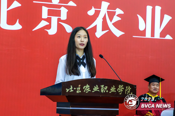 剛剛從北京農學院研究生畢業、獲得北京市優秀碩士畢業生,即將踏上博士求學路的校友代表、2018屆優秀畢業生陳暢同學發言。陳暢同學分享了自己的經歷和感悟。希望學弟、學妹們能夠堅持學習,把良好的學習能力轉化為核心競爭力,把人生追求的“個人夢”融入到民族復興的“中國夢”中去!