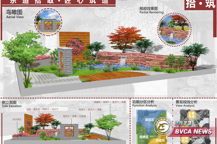 園林景觀設(shè)計(jì)與施工賽項(xiàng)為團(tuán)體項(xiàng)目,包含園林景觀設(shè)計(jì)和施工兩項(xiàng)任務(wù),賽事總時(shí)長16小時(shí)。設(shè)計(jì)選手根據(jù)比賽指定的環(huán)境、材料等,在4小時(shí)內(nèi)完成一套5m×6m的小花園景觀施工圖設(shè)計(jì)方案;施工選手根據(jù)設(shè)計(jì)圖紙經(jīng)過12小時(shí)施工,完成木作、砌筑、鋪裝、水景營造、植物造景等任務(wù),最終構(gòu)成一件園林景觀作品,展現(xiàn)真實(shí)工作場景。比賽既考察選手具備創(chuàng)新設(shè)計(jì)理念、掌握繪圖軟件操作、熟練園林工程施工,更考核選手的團(tuán)隊(duì)協(xié)作意識和工匠精神。