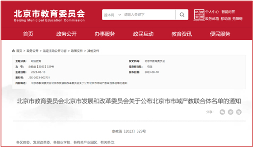 8月10日,北京市教育委員會、北京市發展和改革委員會發布《北京市教育委員會北京市發展和改革委員會關于公布北京市市域產教聯合體名單的通知》(京教函〔2023〕329號),學院牽頭申報的“農業中關村園區市域產教聯合體”經綜合評議、社會公示等程序,被確定為北京市市域產教聯合體,學院校企合作產教融合再上臺階。