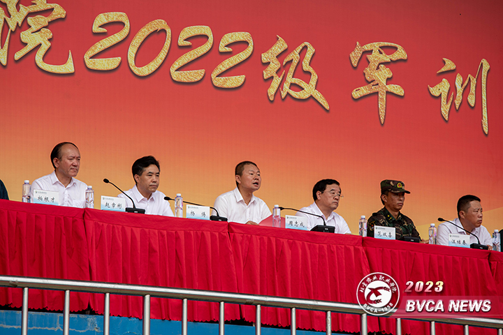 周志成同志代表學院黨委向頑強拼搏,并圓滿完成軍訓任務的同學們表示熱烈的祝賀!向承擔此次軍訓任務的各位教官,以及為軍訓護航保障的一線學工、后勤、安穩等部門的老師們表示衷心的感謝。并提出三點希望:一是希望同學們把軍訓中的好思想、好作風、好習慣等優秀品質帶到今后的學習和生活中去,并一以貫之、知行合一;二是希望同學們把軍訓中嚴管理、守紀律、顧大局的要求帶到今后的學習和生活中去,爭做遵規守紀農職人;三是希望同學們把軍訓中不怕苦、不怕累、勤學習的精神帶到今后學習和生活中去,去創造自己美好的未來。