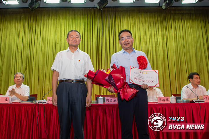 黨委書記周志成為北京市優(yōu)秀教師園藝系李志強教授頒發(fā)獲獎證書。