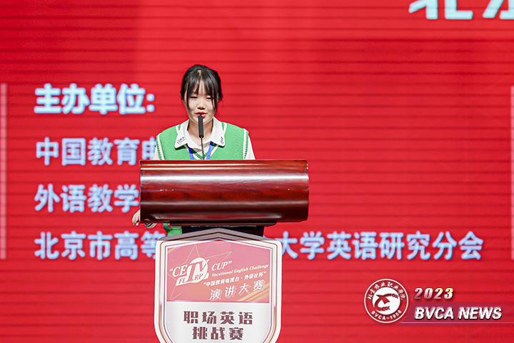 11月3日,2023“中國教育電視臺·外研社杯”職場英語挑戰賽演講大賽北京賽區比賽在石景山區順利舉辦,來自北京市20所院校的56名選手參加了比賽。我院食生系張思諾同學和信息系賀嘉瑤同學榮獲二等獎,食生系錢藝曈同學榮獲特等獎,并將代表北京市高職院校參加全國總決賽。
