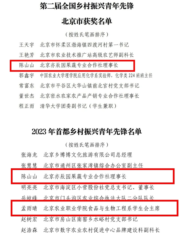 近日,共青團(tuán)中央、農(nóng)業(yè)農(nóng)村部聯(lián)合印發(fā)《關(guān)于表彰第二屆全國鄉(xiāng)村振興青年先鋒的決定》,我院現(xiàn)代服務(wù)管理系2022屆校友陳山山榮獲“第二屆全國鄉(xiāng)村振興青年先鋒”“2023年首都鄉(xiāng)村振興青年先鋒”稱號(hào),食品與生物工程系綠檢2111班孟雨晴同學(xué)榮獲“2023年首都鄉(xiāng)村振興青年先鋒”稱號(hào)。