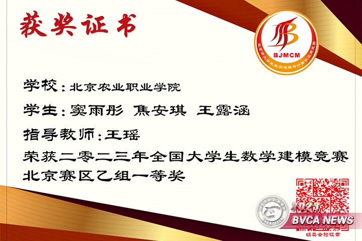 近日,2023年全國大學生數學建模(北京賽區乙組)競賽成績揭曉,我院教師王瑤指導的竇雨彤、焦安琪、王露涵團隊榮獲北京市一等獎,教師吳莉指導的趙喆、周薈君、馬旭晨團隊榮獲北京市二等獎。