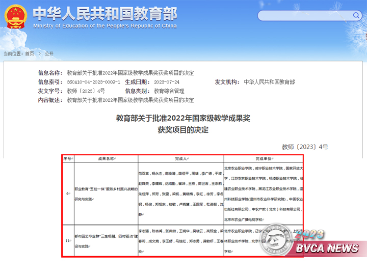 在《2023 中國職業(yè)教育質(zhì)量年度報告》發(fā)布會上,學(xué)校獲評“人才培養(yǎng)卓越校”(東部地區(qū)),“耕讀傳家育人新模式”案例入選報告文化傳承部分案例;《弘揚耕讀精神發(fā)揮農(nóng)職特色培育知農(nóng)愛農(nóng)人才》《善用“大思政”點“靚”新鄉(xiāng)村》在北京市職業(yè)技術(shù)教育學(xué)會思政和德育工作優(yōu)秀案例中分獲一等獎、三等獎。