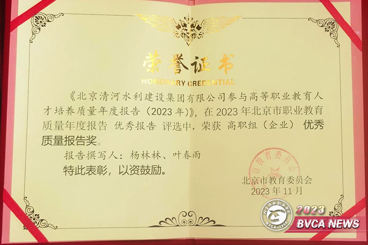 清河水利建設(shè)工程師學(xué)院榮獲“2023 年北京市職業(yè)教育質(zhì)量年度報告優(yōu)秀質(zhì)量報告獎”
