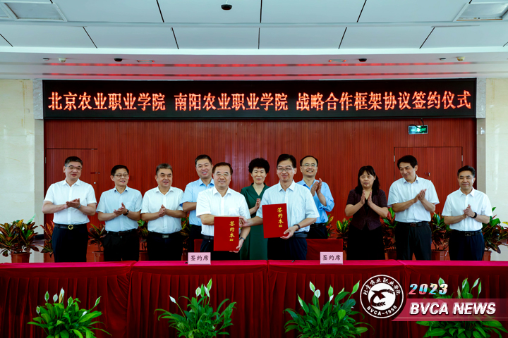 7月10日上午,學(xué)校舉行與南陽農(nóng)業(yè)職業(yè)學(xué)院戰(zhàn)略合作框架協(xié)議簽約儀式。此次協(xié)議的簽署,是在《豫京戰(zhàn)略合作框架協(xié)議》《全面深化京豫戰(zhàn)略合作協(xié)議》大背景下,充分利用京宛合作平臺開展的深度合作。雙方將發(fā)揮集群優(yōu)勢,在專業(yè)共建、人員交流、科研合作、“三全”育人、推動鄉(xiāng)村振興等方面進行全方位深度合作。兩校相互借鑒、相互促進、共同提高,為兩地的經(jīng)濟發(fā)展貢獻力量。