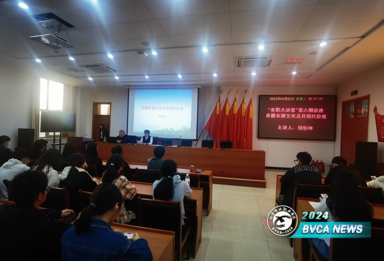4月23日晚,由科研處主辦,圖書館聯合學生工作部、共青團委員會組織承辦的“農職大講堂”第六期講座,在長陽校區圖書館學術報告廳開講,特邀請到原學校關工委秘書長、副研究員鄭伯坤,為現場100多名師生作了“京畿農耕文化及其現代價值”的報告。講座由圖書館館長何艷琳主持。