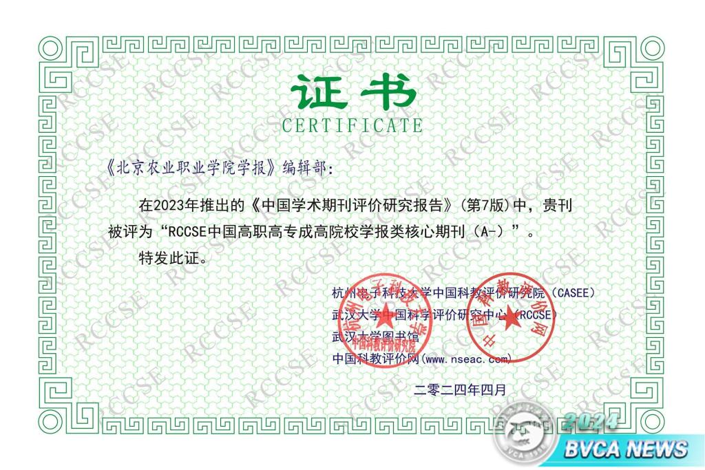 近日,由杭州電子科技大學中國科教評價研究院、武漢大學中國科學評價研究中心、武漢大學圖書館、中國科教評價網(wǎng)(www.nseac.com)聯(lián)合啟動的“中國學術(shù)期刊評價研究報告(第七版)”的研制工作已完成,《北京農(nóng)業(yè)職業(yè)學報》再次入選“RCCSE中國高職高專成高院校學報類核心期刊(A-)”,這是繼2015年、2017年和2020年之后第四次入選。